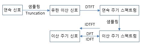 - 즉, `이산 주기 시간 신호` ↔ `이산 주기 주파수 스펙트럼`