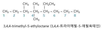 - 시작 번호를, 치환기(곁가지)가 끝에 가깝게 위치한 곳부터, 순서적으로 탄소에 번호를 붙임