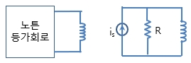 - 노튼 정리 : 1개 독립 전류원과 1개 등가 저항이 병렬 접속된 등가 회로로 표현 가능