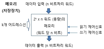 - 쓰기 동작 (write operation) : 새로운 워드를 특정 위치에 저장(대체)하는 동작