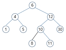 - 例) 부모 왼쪽의 자식 노드들은, 부모 보다 앞서는(작은값) 노드들을 포함